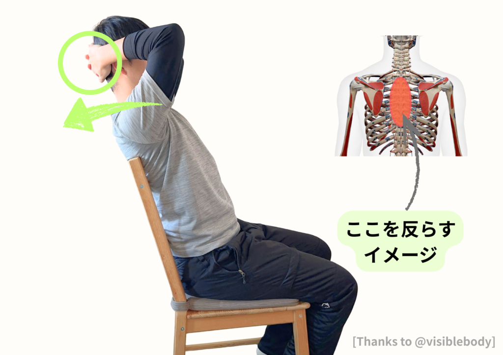 3. 背もたれを使って背中(胸椎を)反らす